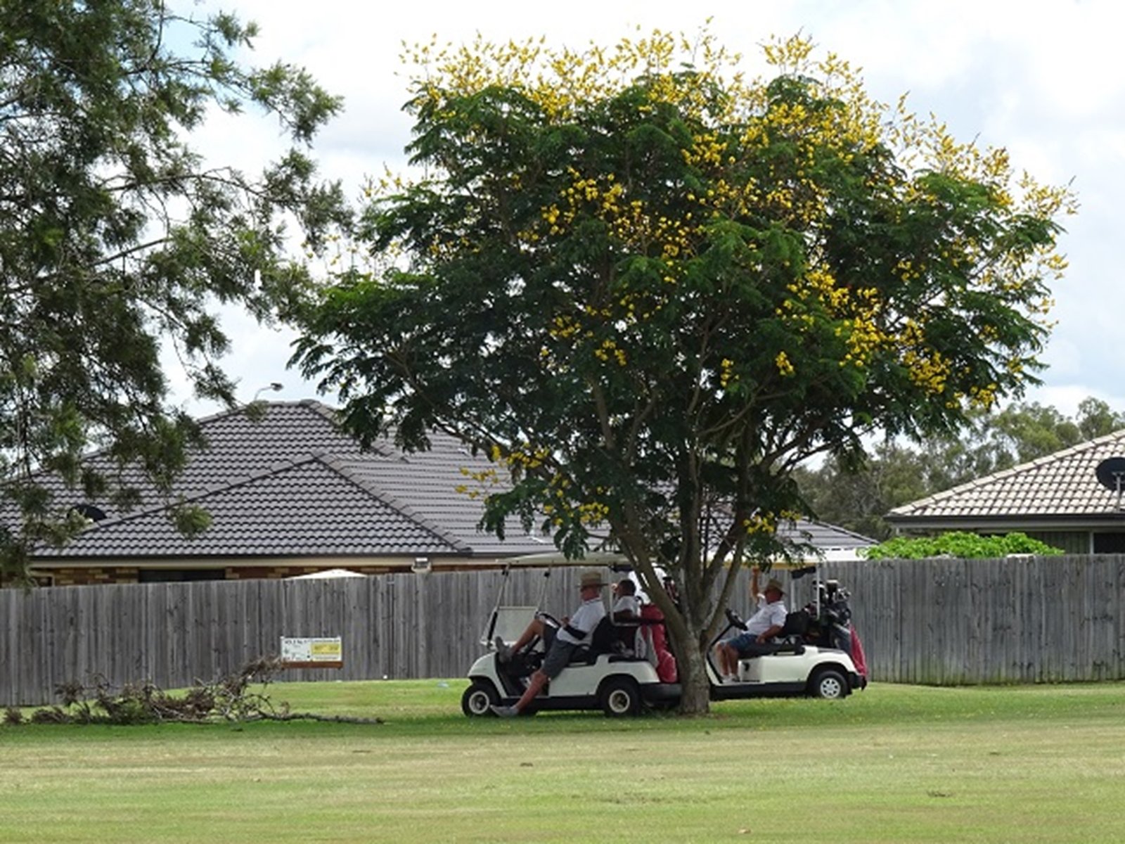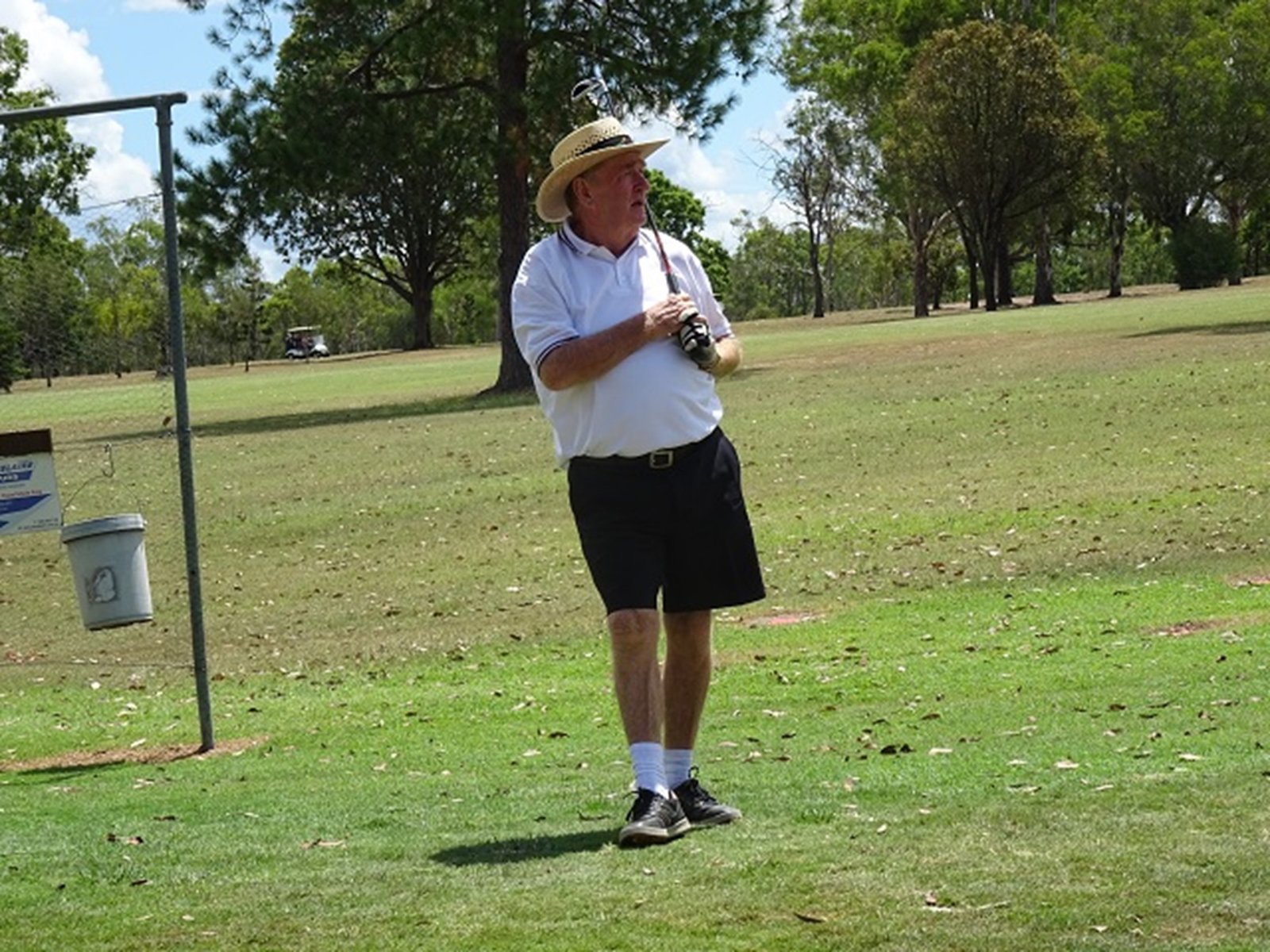 A partly cloudy, but mostly sunny, day with a temperature reaching 31 degrees and as is shown above, every opportunity was taken to use the shade so plentiful around the Course.