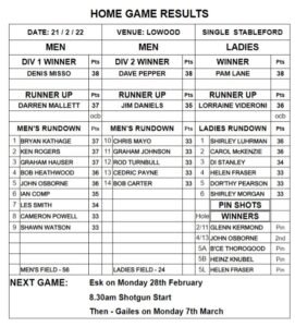 The next game is at Esk on Monday 28th February. It will be an 8.30am Shotgun start. The Timesheet is available at Rosewood Golf Club. The Timesheet for the Gailes game on the 7th of March is also available.